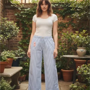 Jogging Palazzo Frizado – con lineas – Verde oscuro