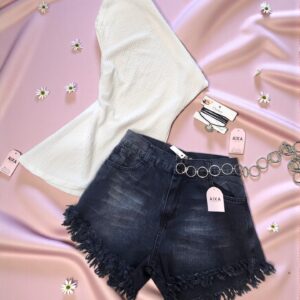 Short volados estilo Boho – Negro/Natural