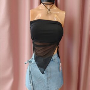 Minifalda engomada con frunce – Negra