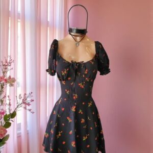 Maxi vestido bordado con falda amplia y mangas princesa – celeste/verde