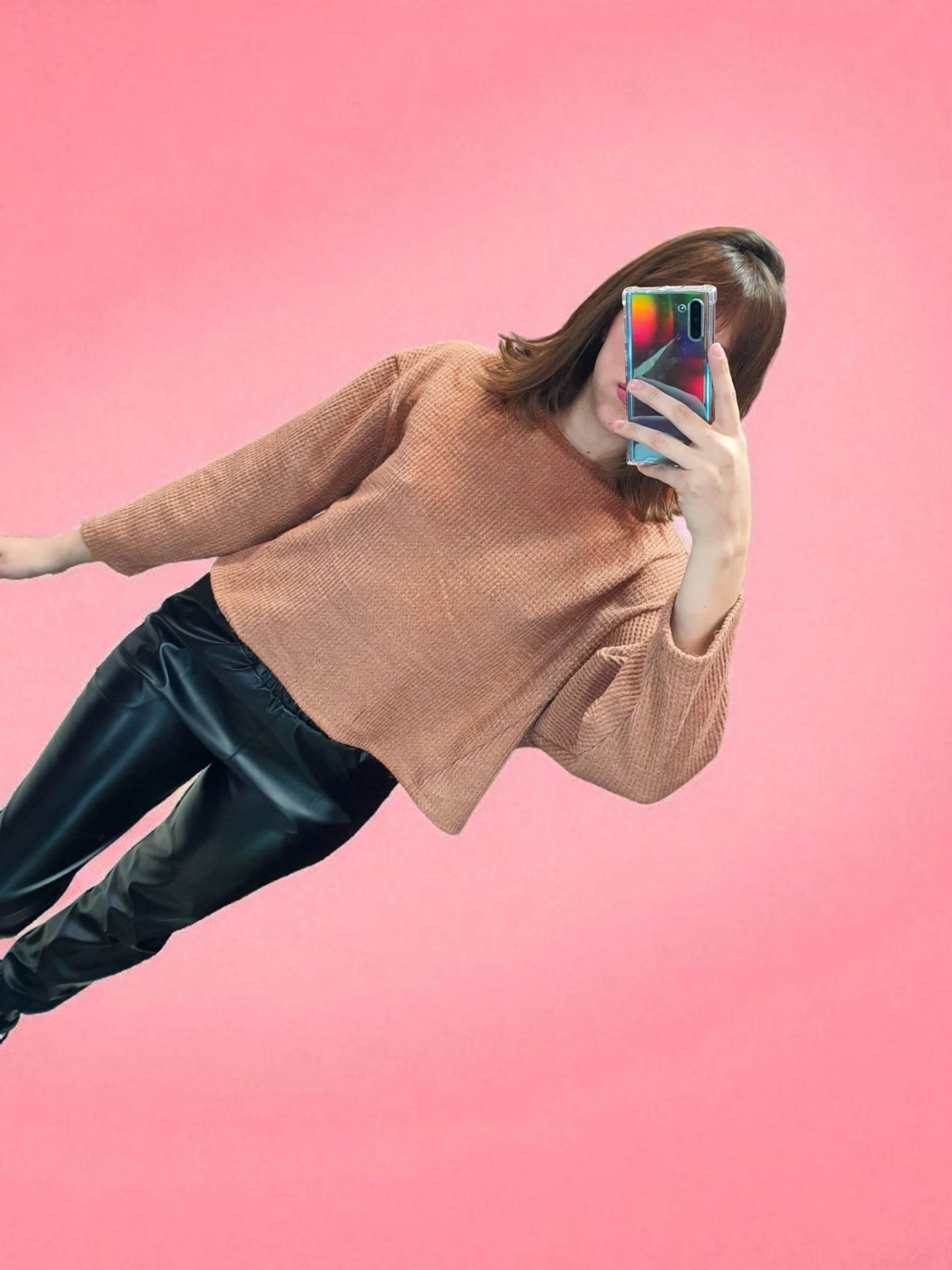 Camiseta-Buzo lisa con corte amplio de waffle frizado. Hasta talle L va bien