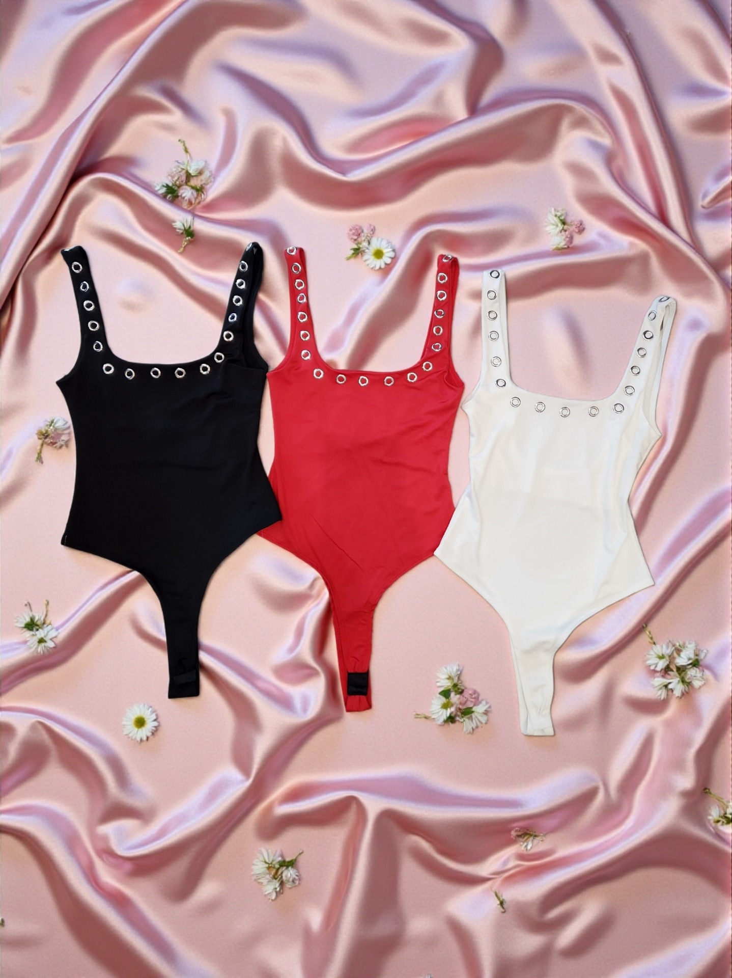 Body escote cuadrado y ojales – negro/blanco/rojo