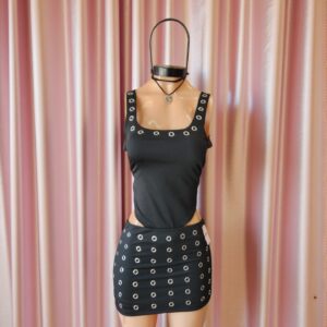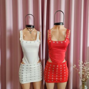 Talle único, elastizado, hasta talle 40 va perfecto. Incluye 2 prendas, la pollera y el top de crochet.