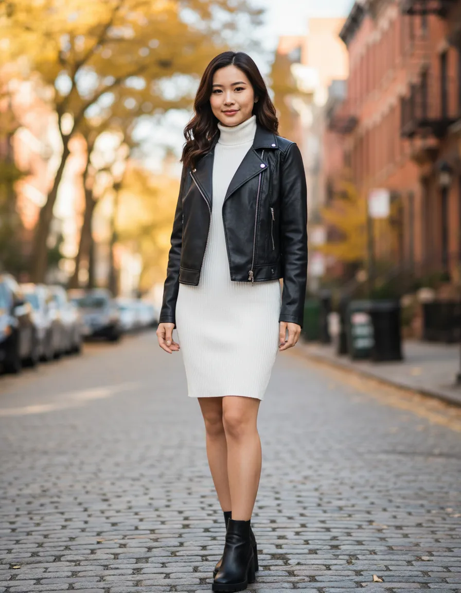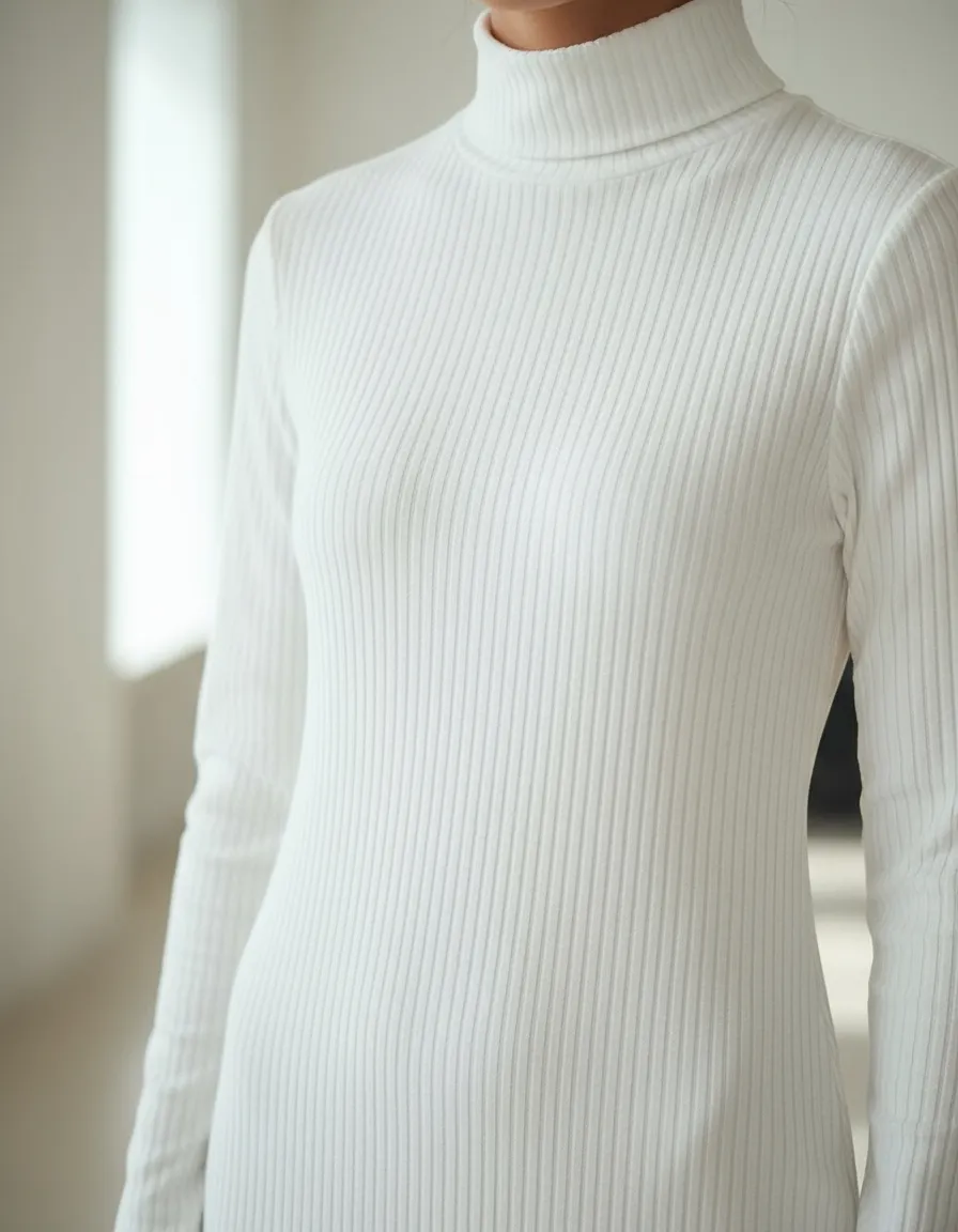 Vestido manga larga con cuello media polera de morley brush frizado. Talle único hasta talle 44 va bien.