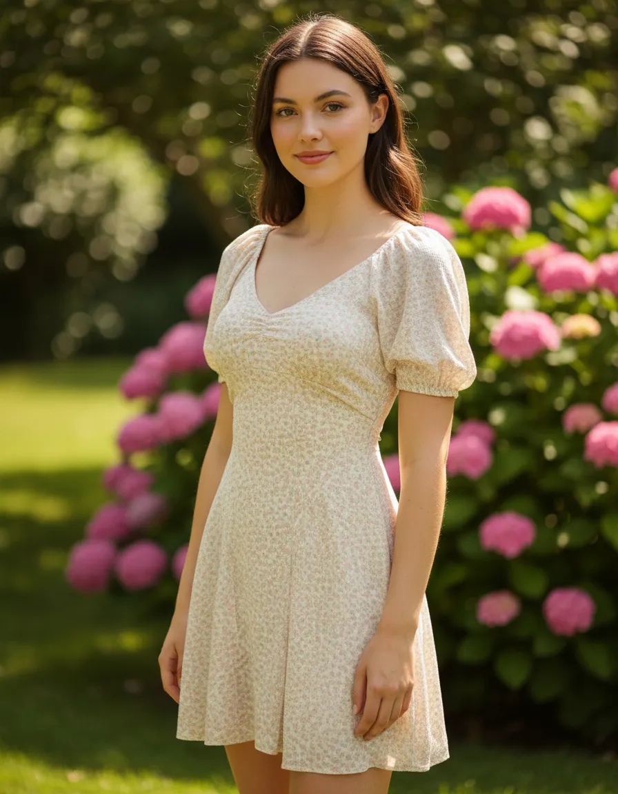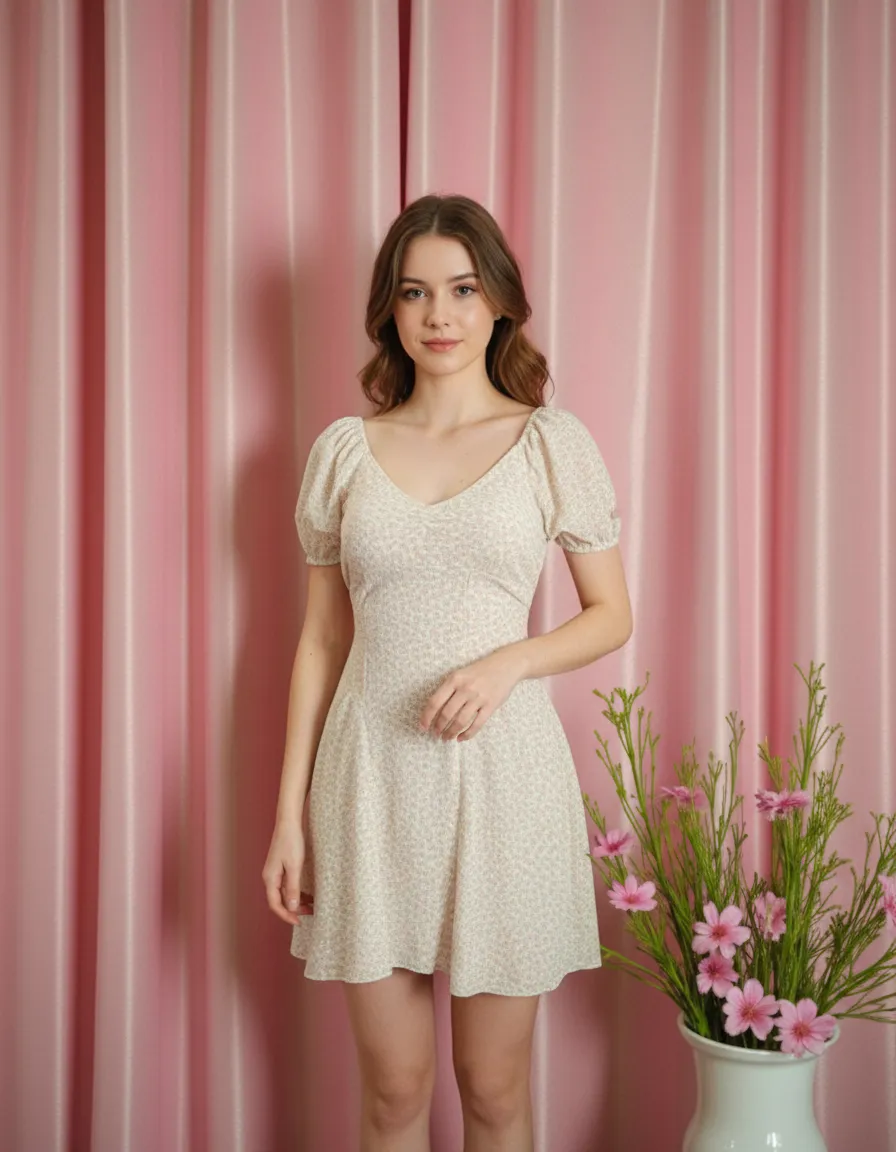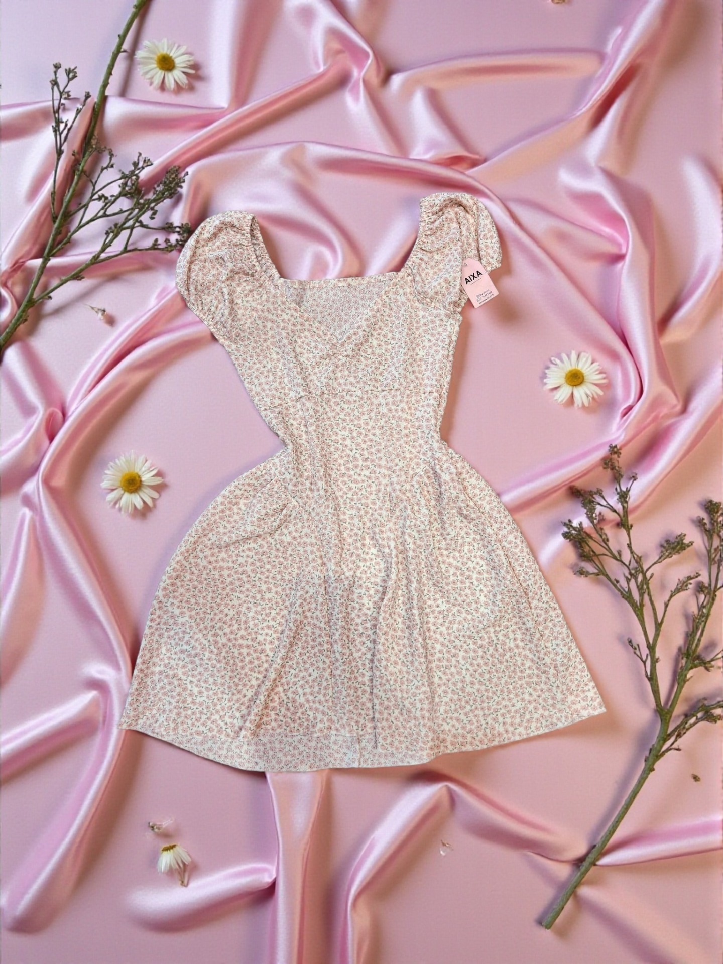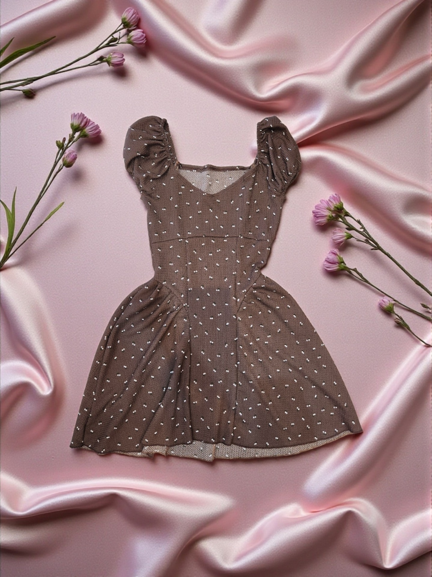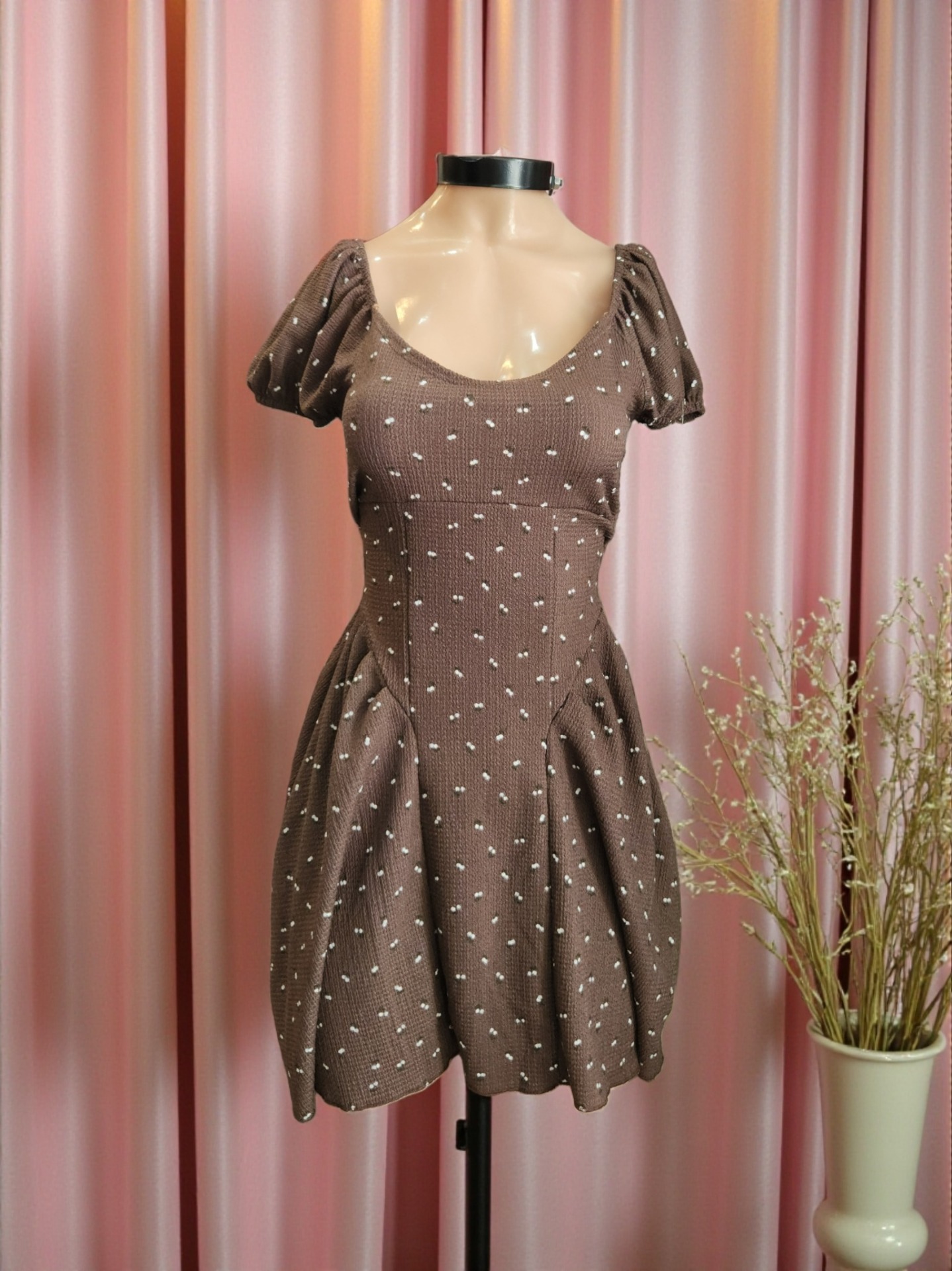 Vestido corte A con mangas – floreado romántico – chocolate, rosa