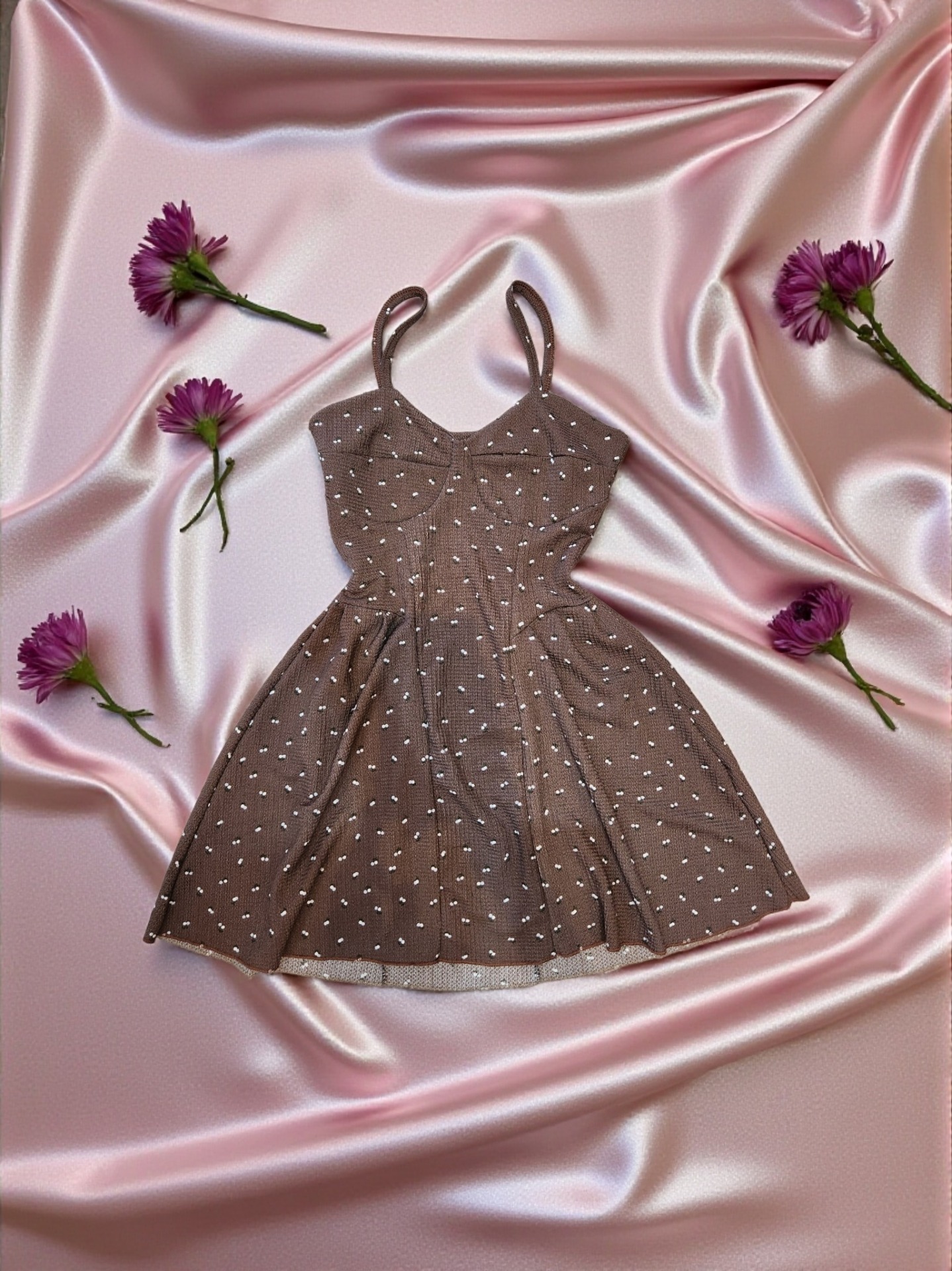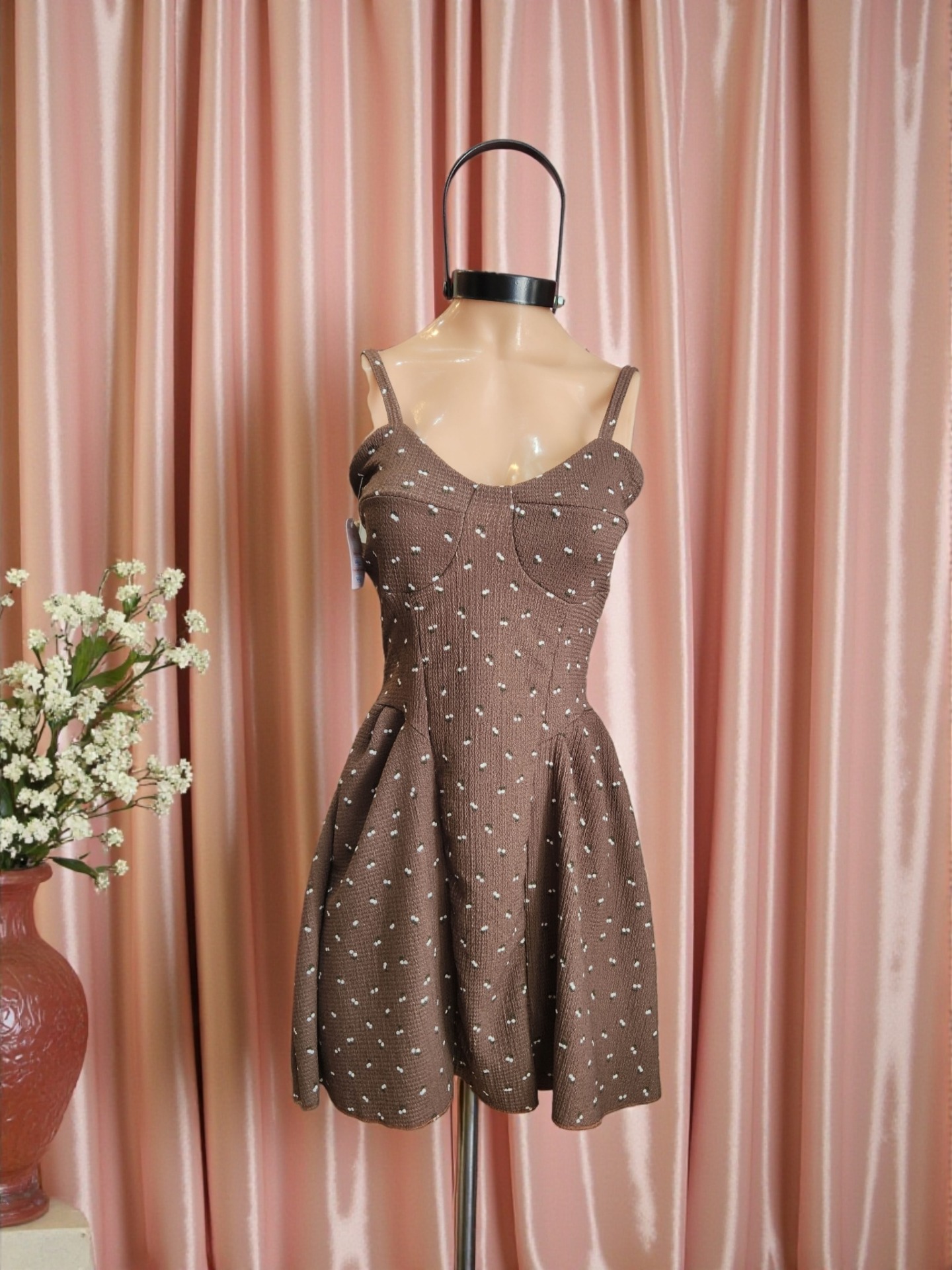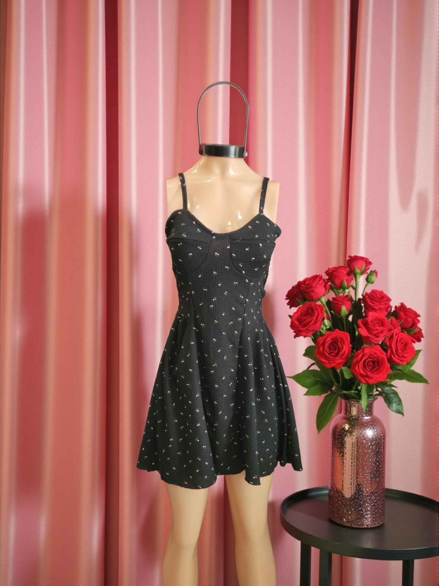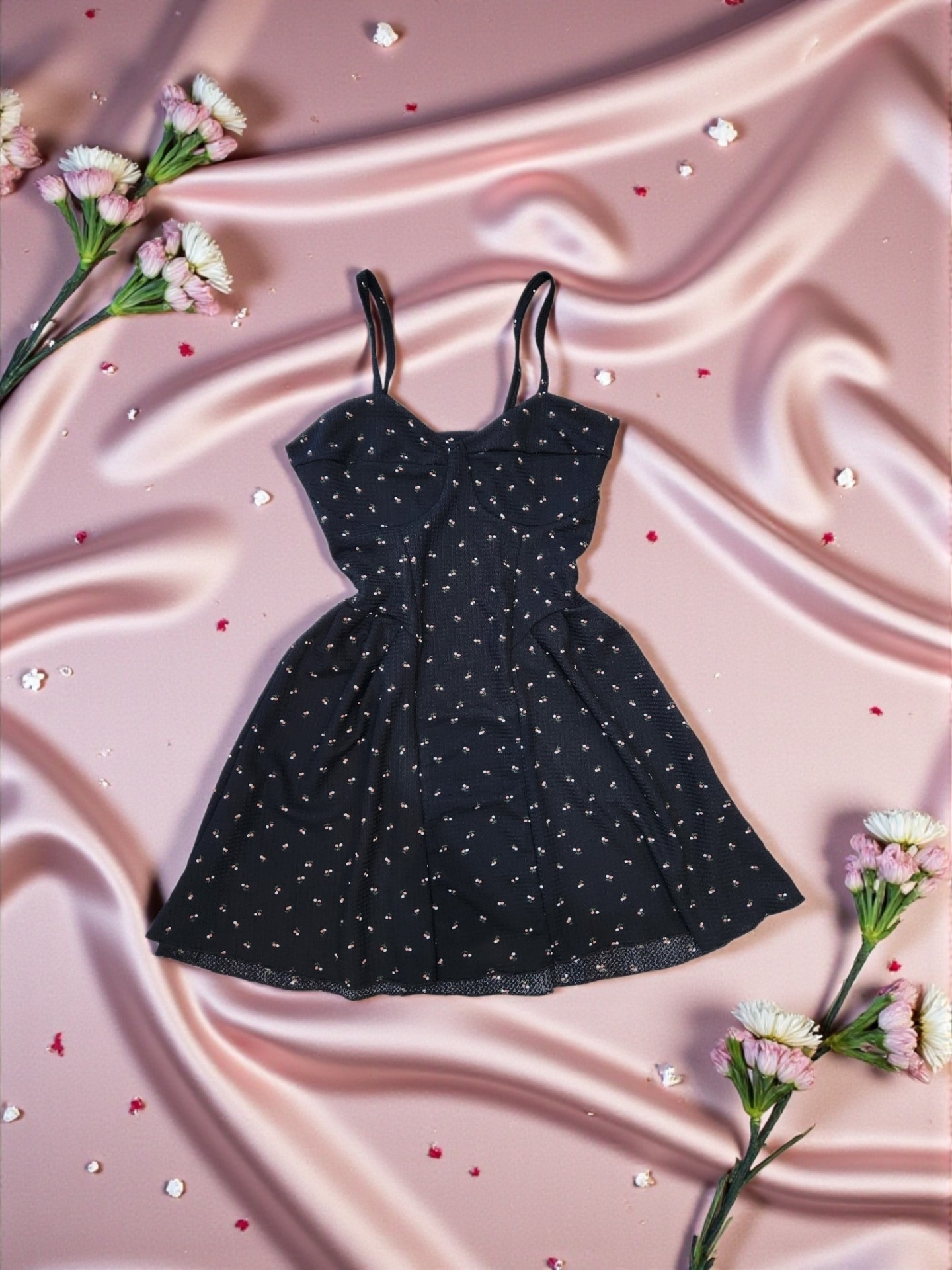 Vestido corte A con tiritas – floreado romántico – negro, verde, chocolate, rosa