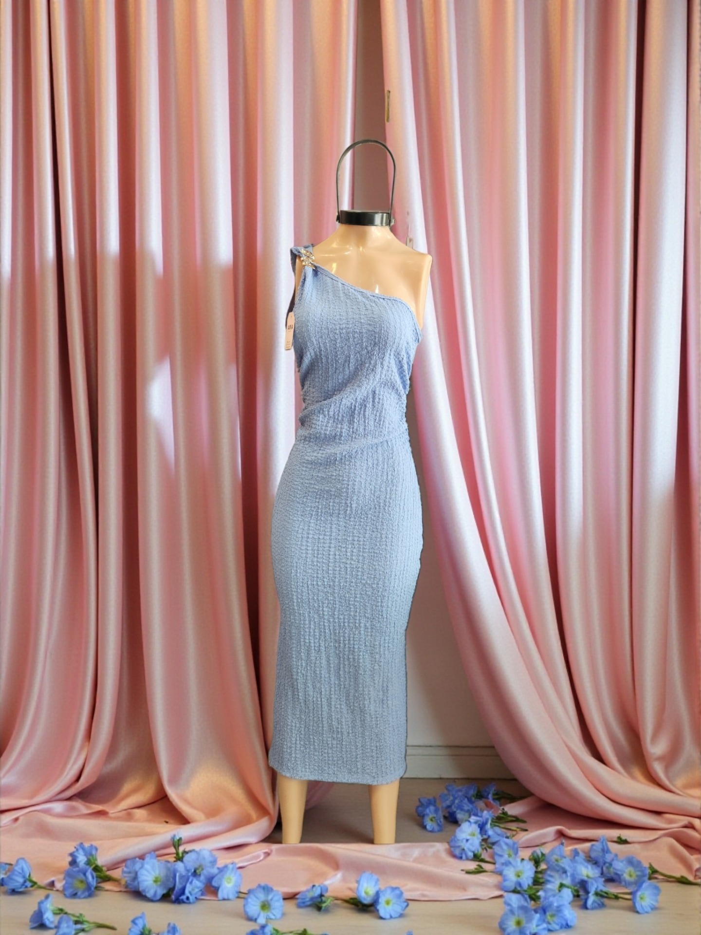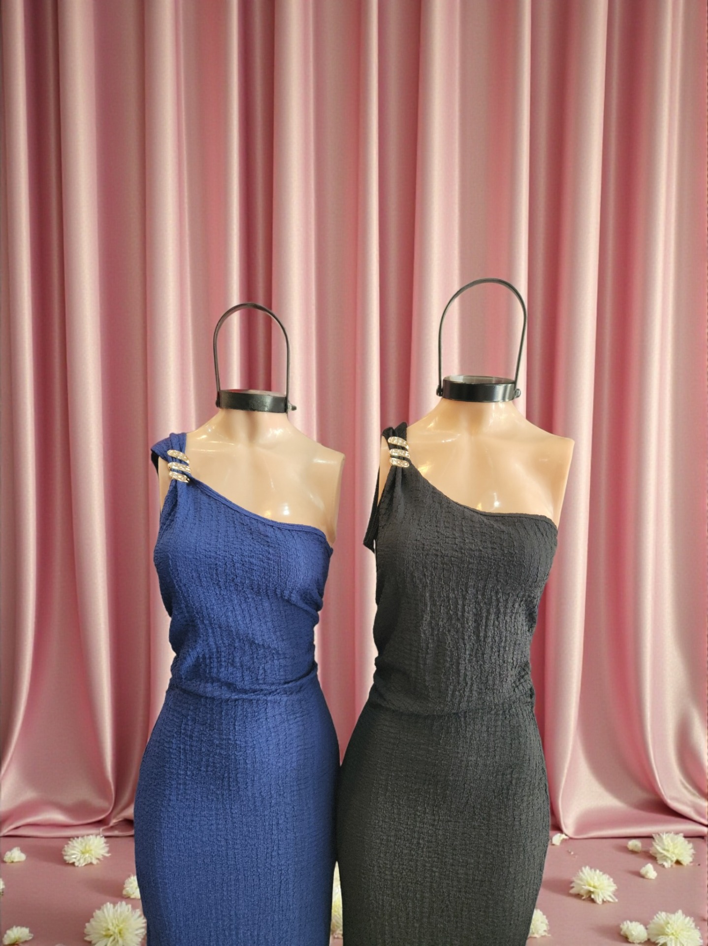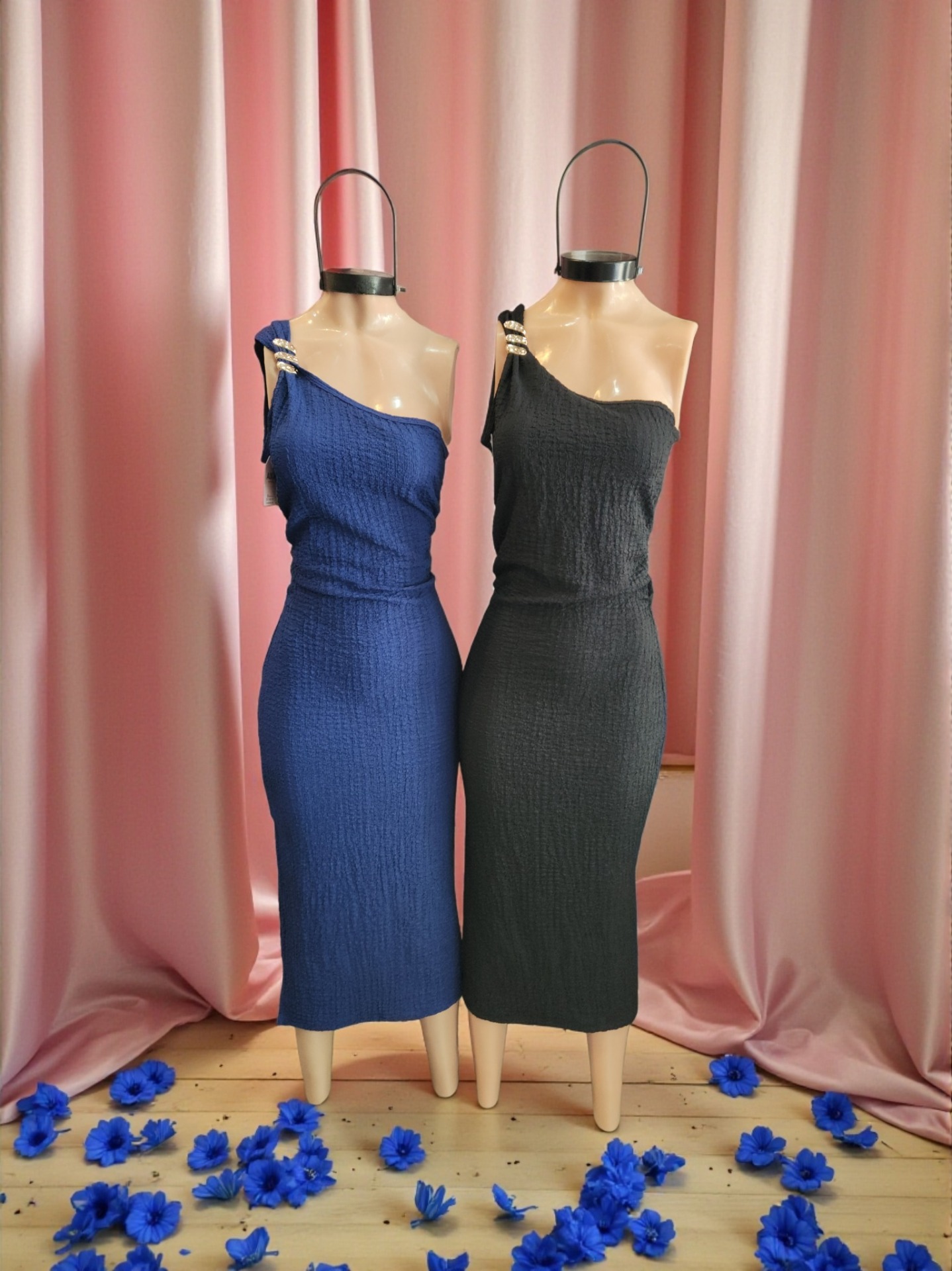 Vestido largo 1 solo hombro – bambula elastizada – negro, azul, celeste